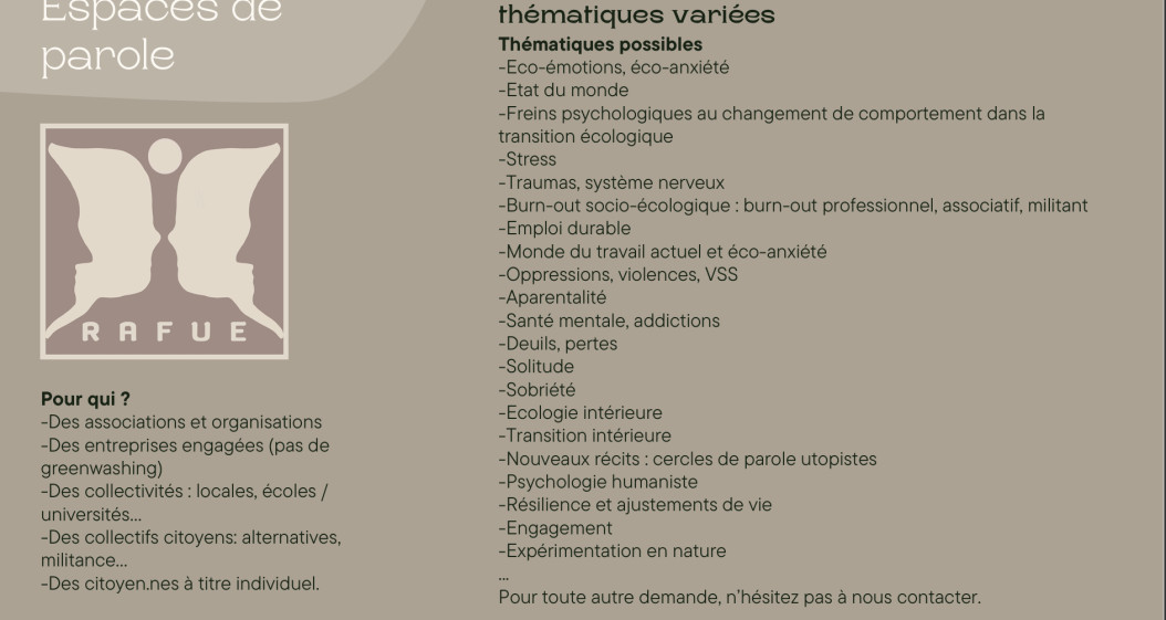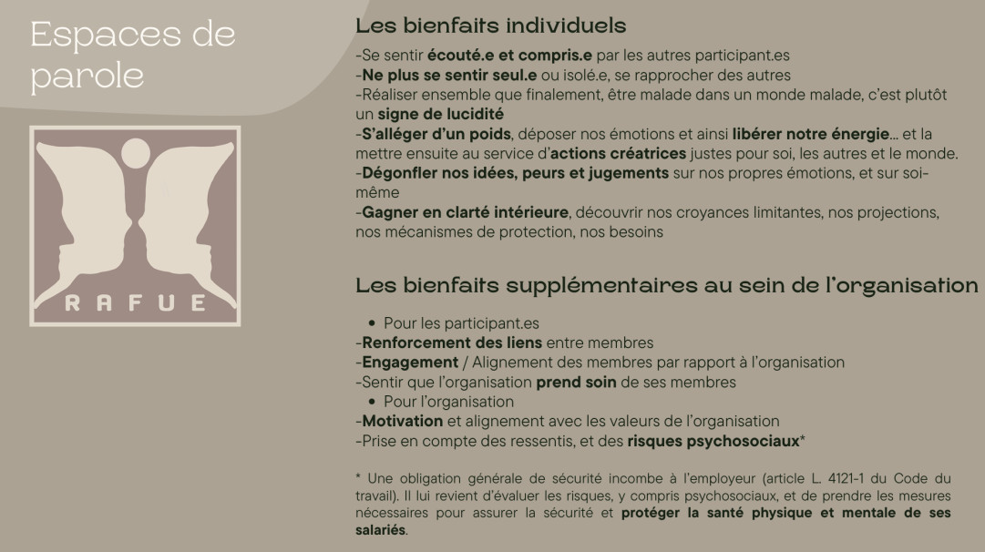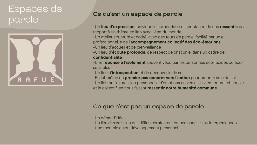 Espace de paroles Publié le 20 mars 2026 ― Durée de lecture 1 minute Mots clés Retrouvez la présentation de l'Espace de paroles au sein du RAFUE
